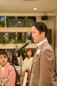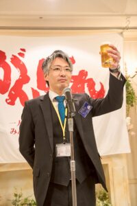 須藤将史代表の挨拶で「目標を掲げて達成した気持ちになって取り組むと目標は達成する」