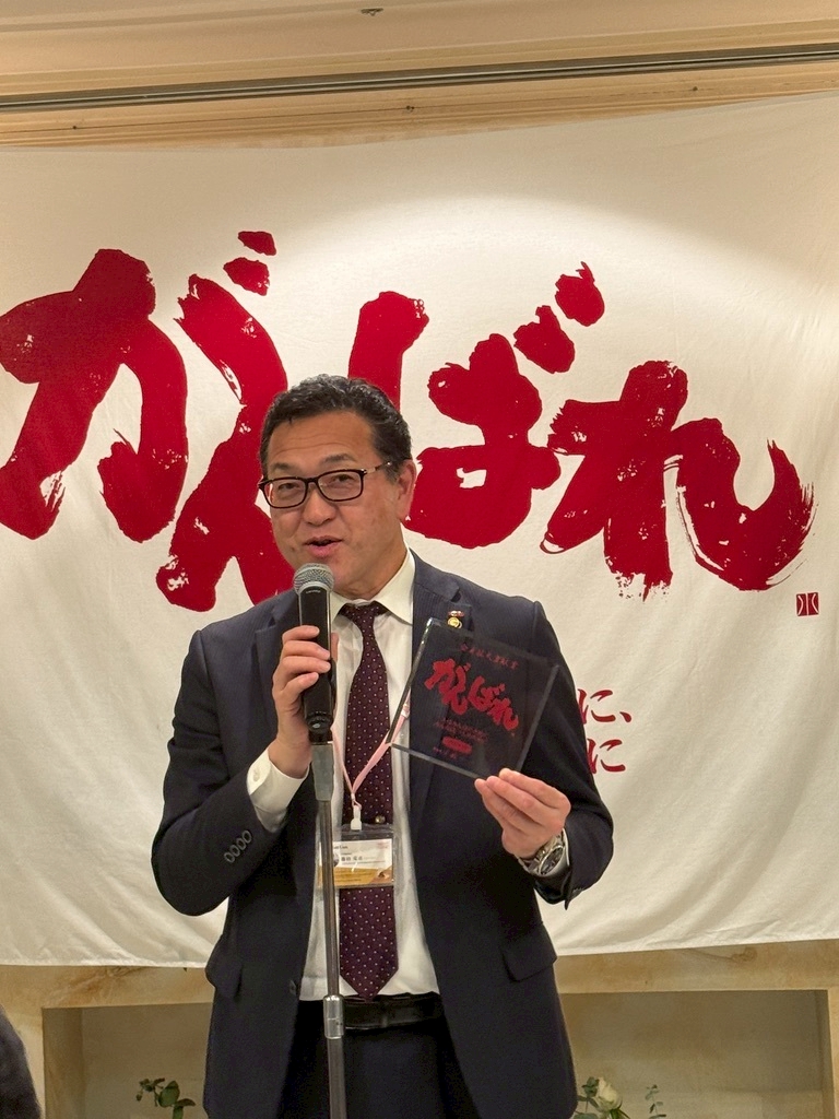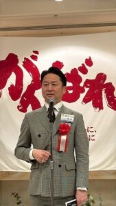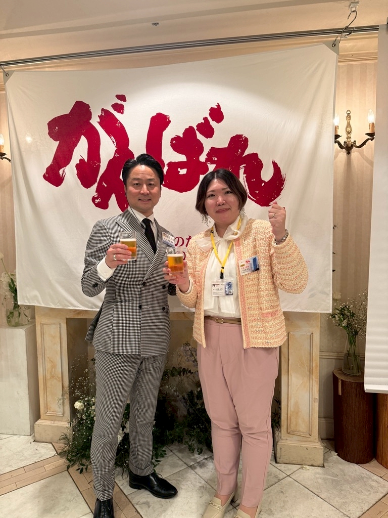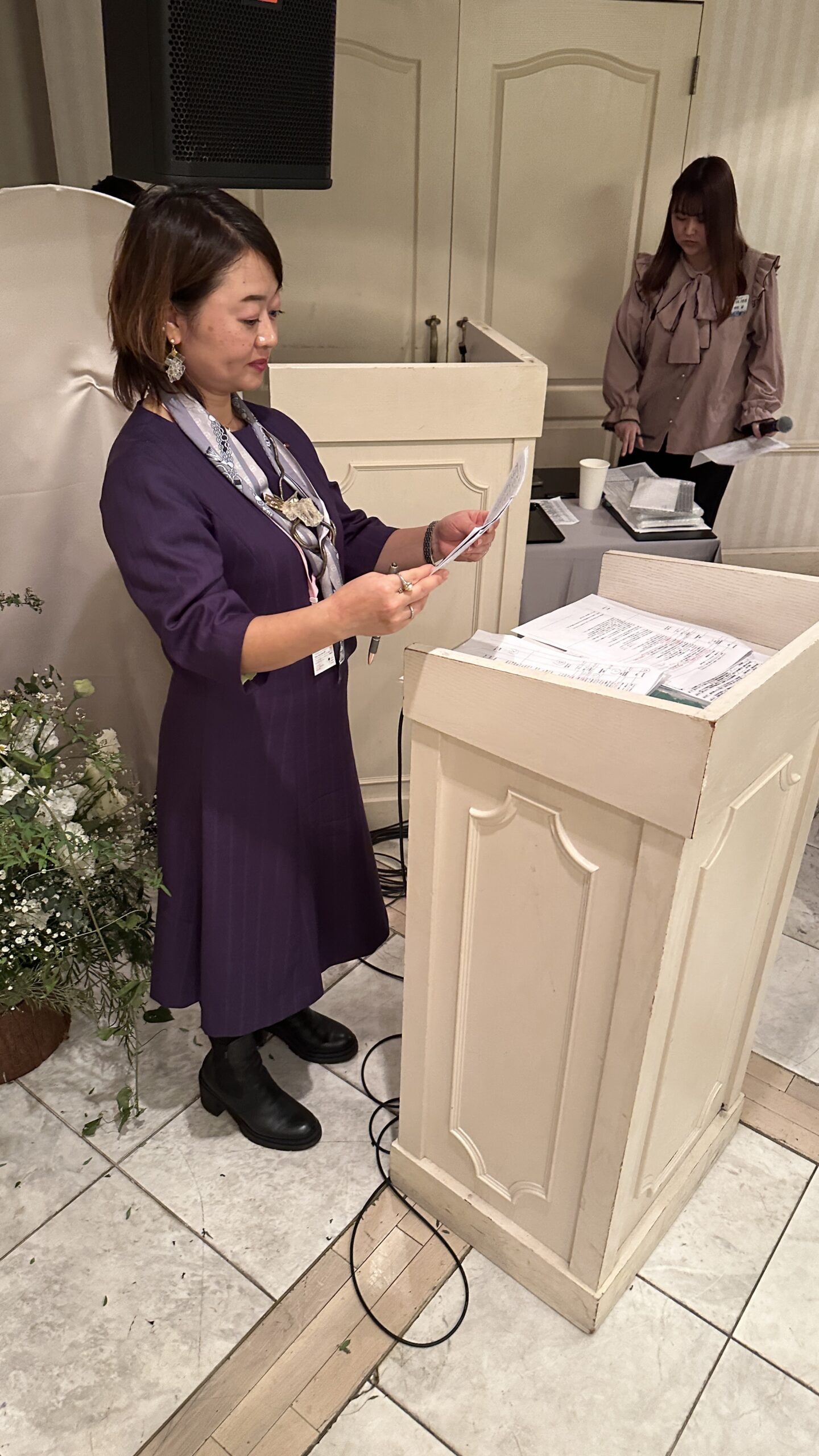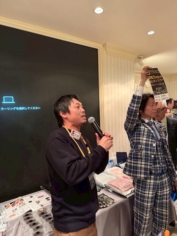 今回の弥栄の挨拶はヒルノ渋谷会場代表に就任しました松浪新代表。挨拶では「130人と商談ができるのではなく、1人の後ろに250人がついている」とありました。